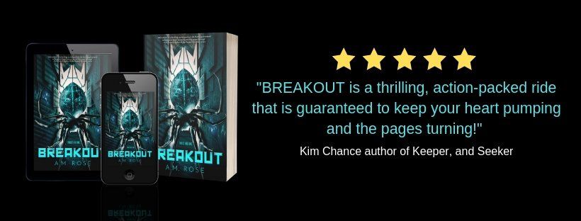 "A.M. Rose's sophomore novel, BREAKOUT, is sure to take readers on a fascinating journey into the distant (or not so distant) future, where technology controls every aspects of life and state surveillance reigns supreme. Part cyberpunk dystopia, part frantic prison break romp, and part science fiction, BREAKOUT will keep you guessing until the last page. A.M. Rose's superb skill of creating engaging characters that readers will care about deeply shines on every page. From the very first sentence, I was cheering for Lezah, the narrator, as she fought her way out of danger and forged bonds with the unlikeliest of allies instrumental to her success."